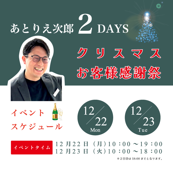 石國商店 大手町店 猪羽店長より「あとりえ次郎 クリスマスお客様感謝祭」開催のお知らせ