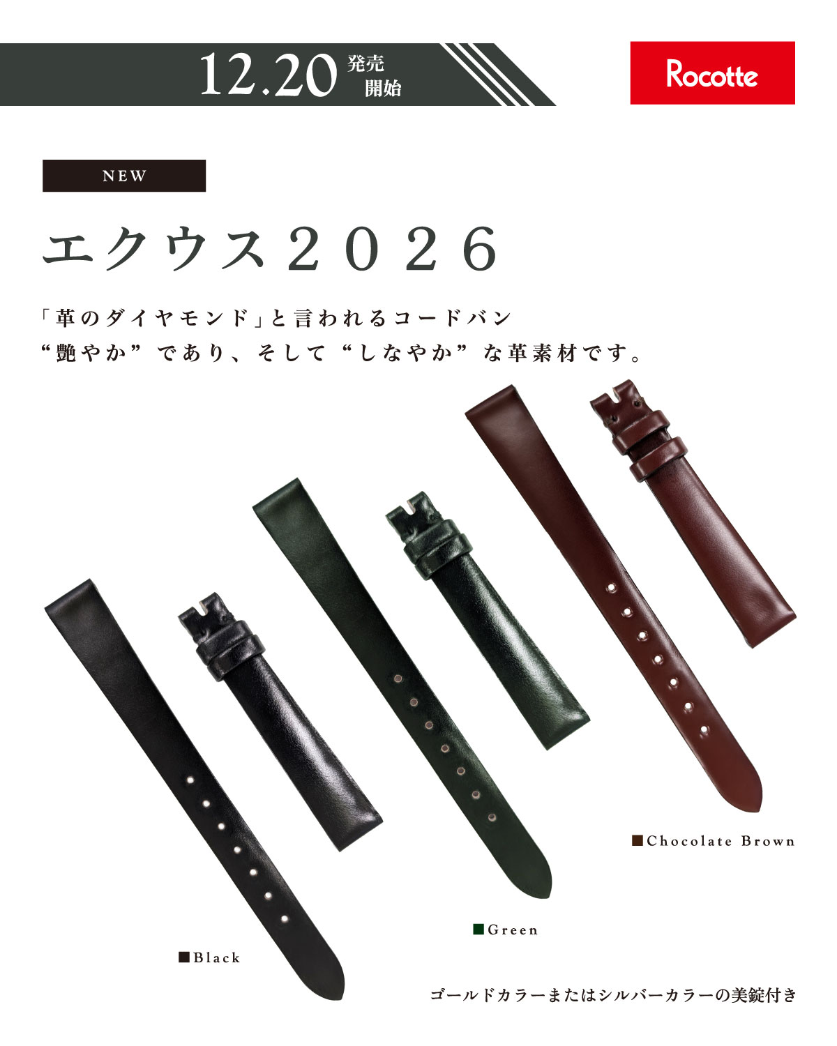ロコッテの新作時計ベルト「エクウス 2026」を12月20日(土曜日)より販売開始します。